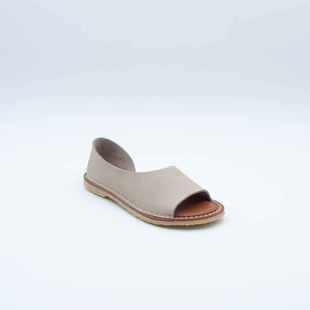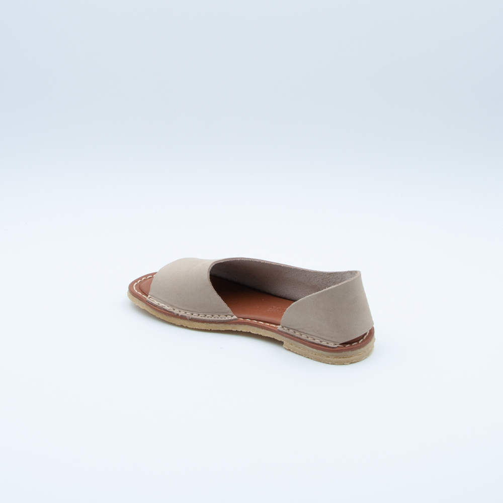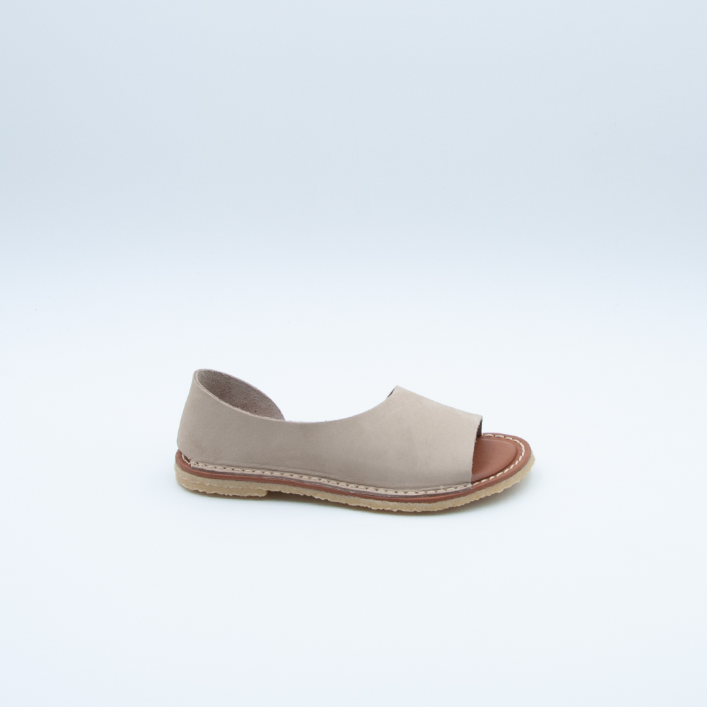 Sandalo Chacal dal design asimmetrico realizzato in morbida pelle color sabbia. Si contraddistingue per la soletta imbottita morbidissima e il fondo in gomma antiscivolo superflessibile.