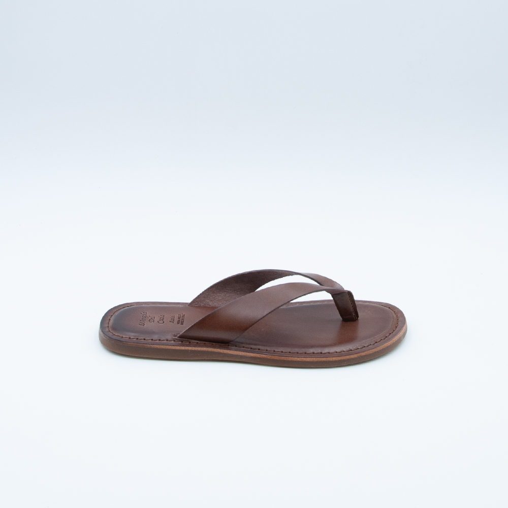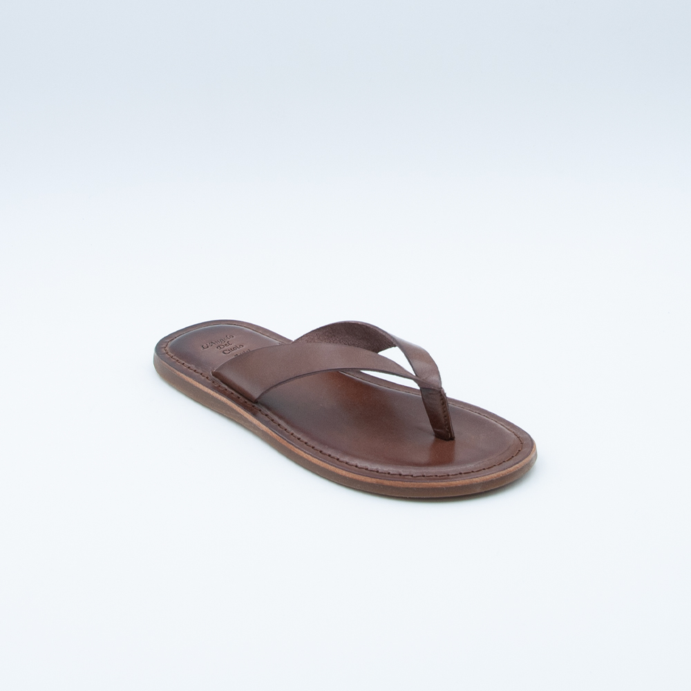 Ciabatta infradito realizzata in vacchetta color marrone con fondo in gomma antiscivolo. Si contraddistingue per il sottopiede imbottito.