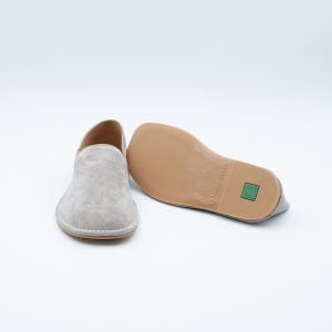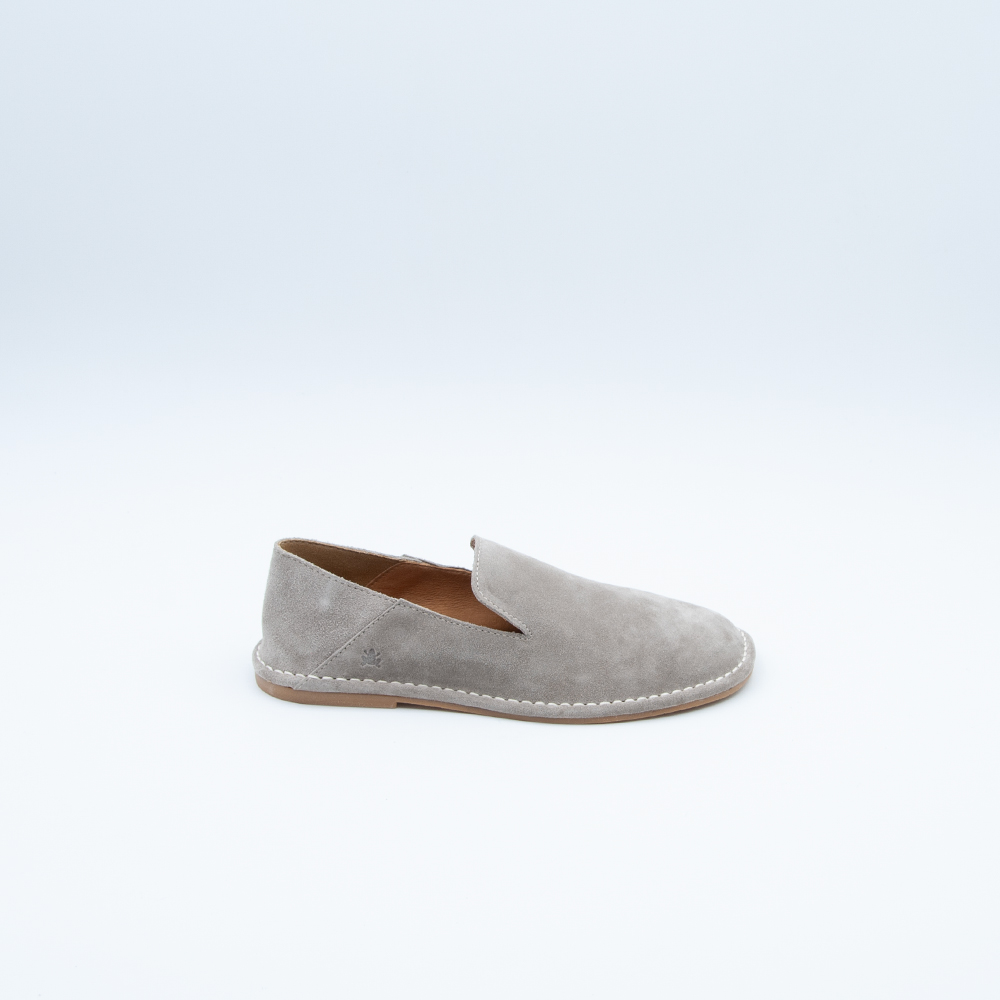 Mocassino minimal realizzato in morbidissimo camoscio color Taupe, con soletta interna in pelle e fondo in gomma antiscivolo. Si contraddsitingue per la forma ampia e la morbidezza del materiale che accompagnano la forma naturale del piede.