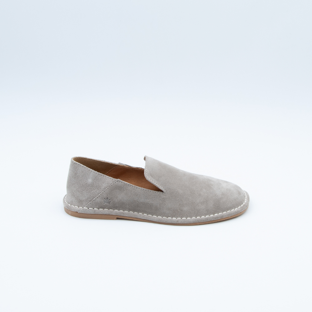 Mocassino minimal realizzato in morbidissimo camoscio color Taupe, con soletta interna in pelle e fondo in gomma antiscivolo. Si contraddsitingue per la forma ampia e la morbidezza del materiale che accompagnano la forma naturale del piede.
