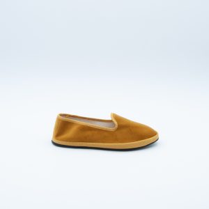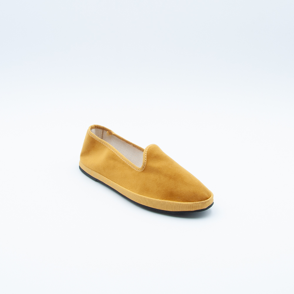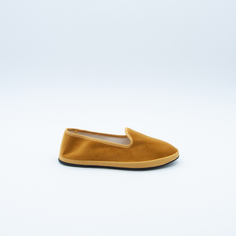 Friulana in velluto color giallo ocra con sottopiede morbido.