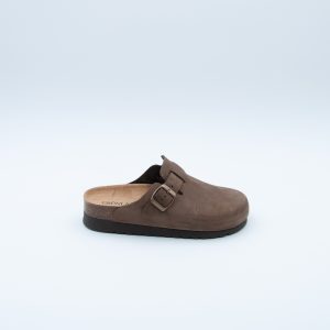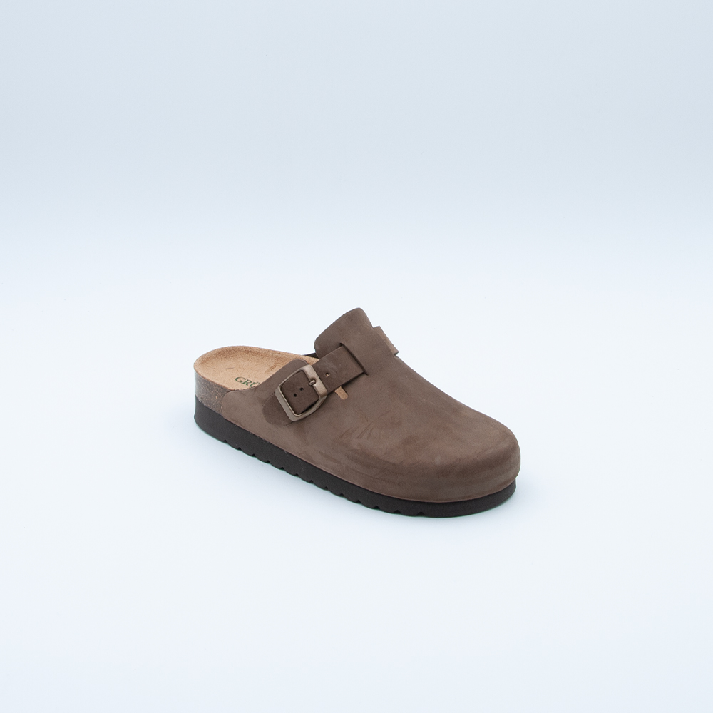 Sabot Grünland realizzato in pellle color testa di moro. Si contraddistingue per il sottopiede memory e l’altezza più alta del tacco.