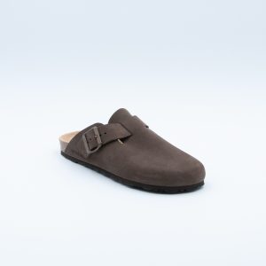 Grünland – Sabot realizzato in pelle scamosciata color castagno con plantare in sughero naturale e sottopiede memory.