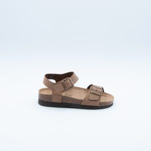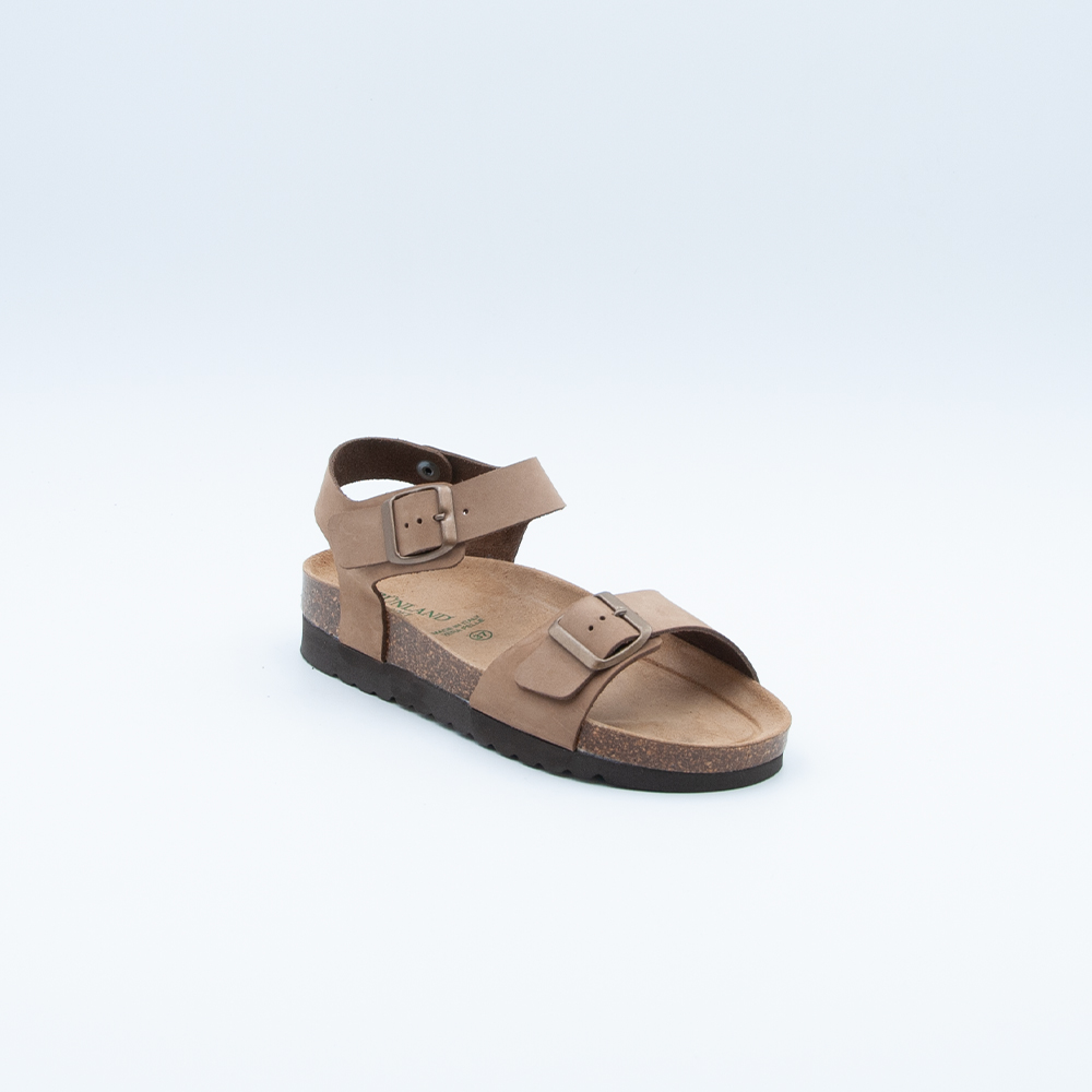 Grünland | Sandalo Hola con cinturino alla caviglia, realizzato in pelle color taupe, con plantare in sughero naturale e sottopiede memory. Si contraddistingue per il tacco leggermente rialzato.