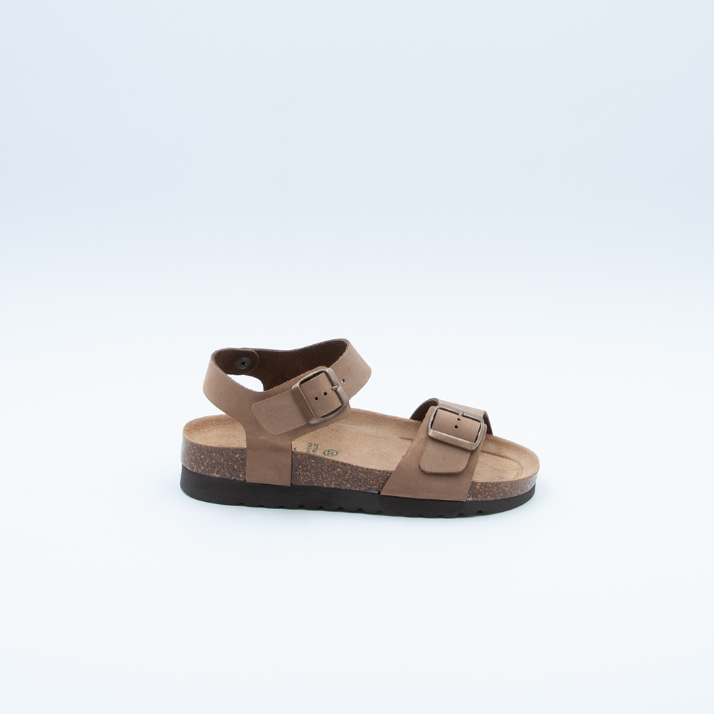 Ciabatta Grünland a doppia fascia, realizzata in pelle ingrassata color mogano con plantare in sughero naturale e sottopiede memory.