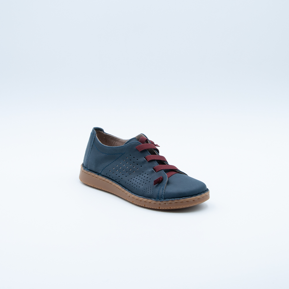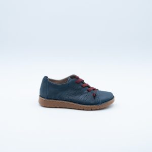 Grünland – Scarpa con dettaglio traforato e lacci elastici, realizzata interamente in pelle di colore blu foderata con sottopiede morbido e fondo in gomma antiscivolo. Plantare estraibile. Made In Italy.
