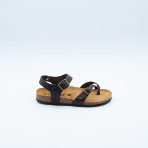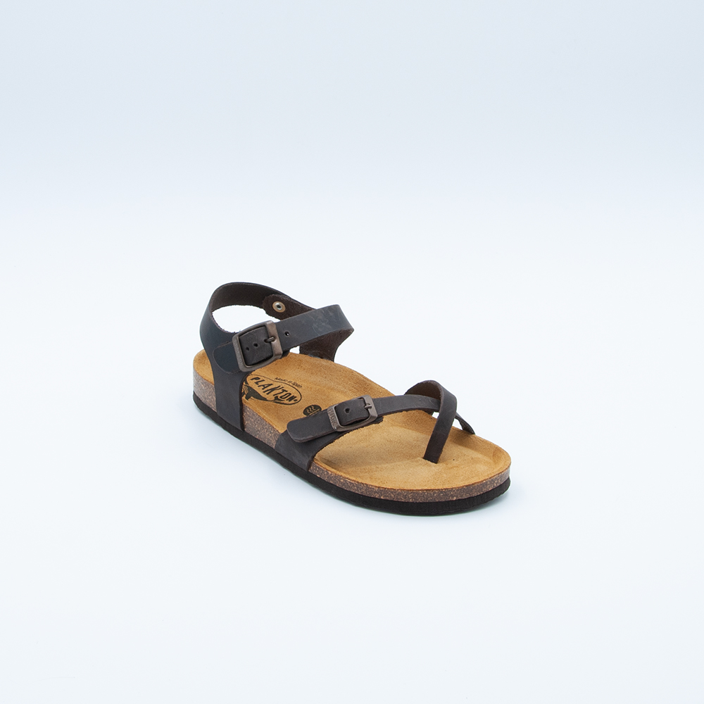 Sandalo infradito Plakton in pelle color testa di moro con plantare in sughero naturale e sottopiede memory.