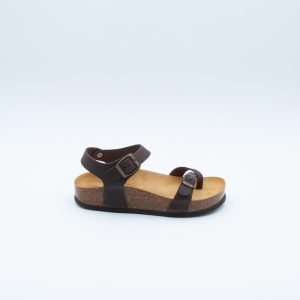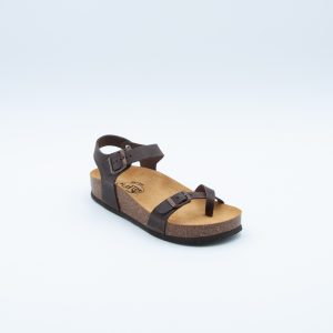 Sandalo infradito Plakton in pelle color testa di moro con plantare in sughero naturale e sottopiede memory. Si costraddistingue per la suola più alta.