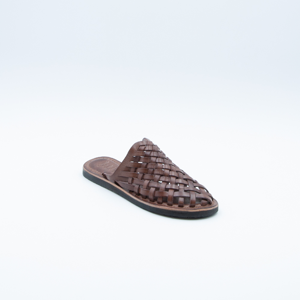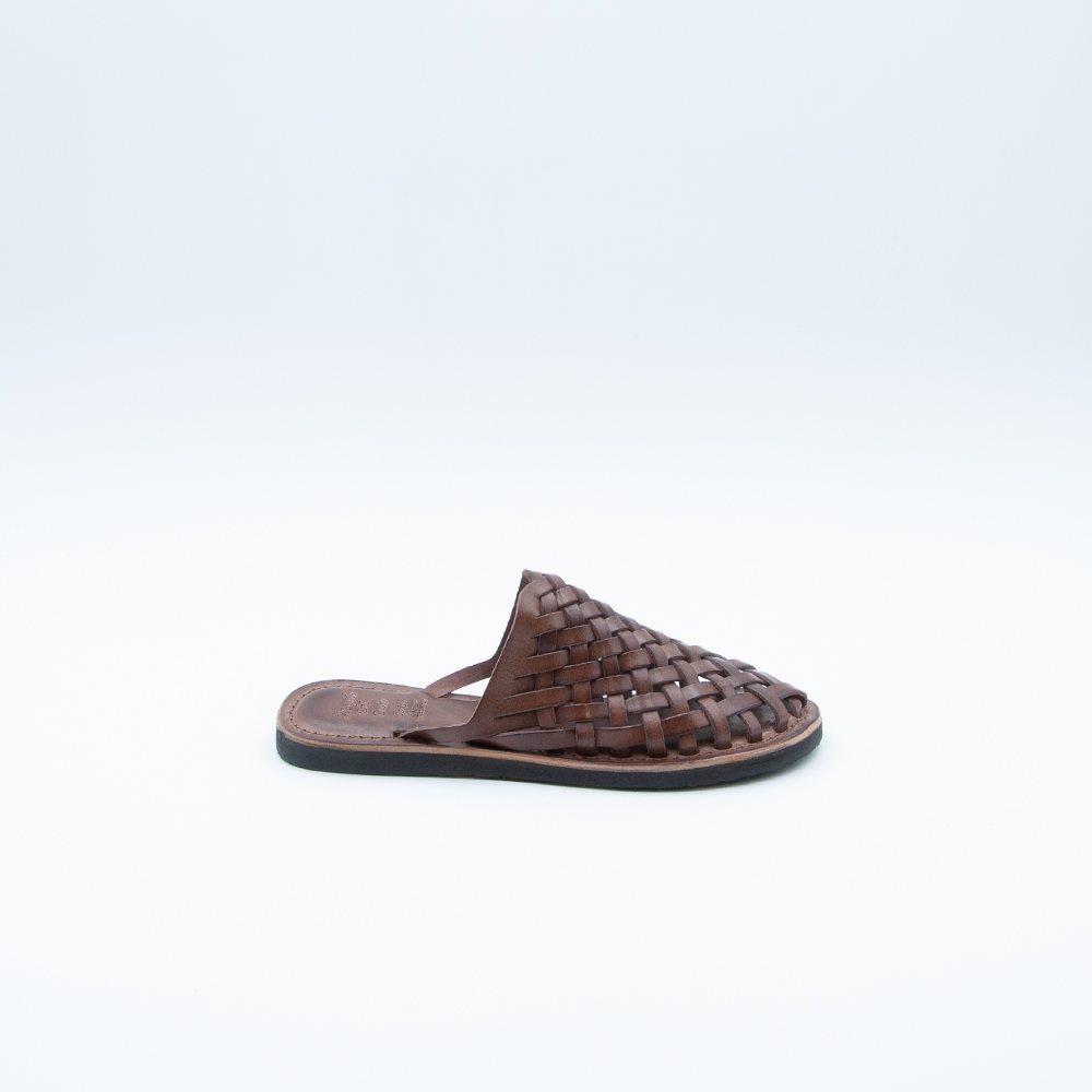 Sabot motivo a rete realizzato in vacchetta color marrone con fondo in gomma antiscivolo. Si contraddistingue per il sottopiede imbottito.